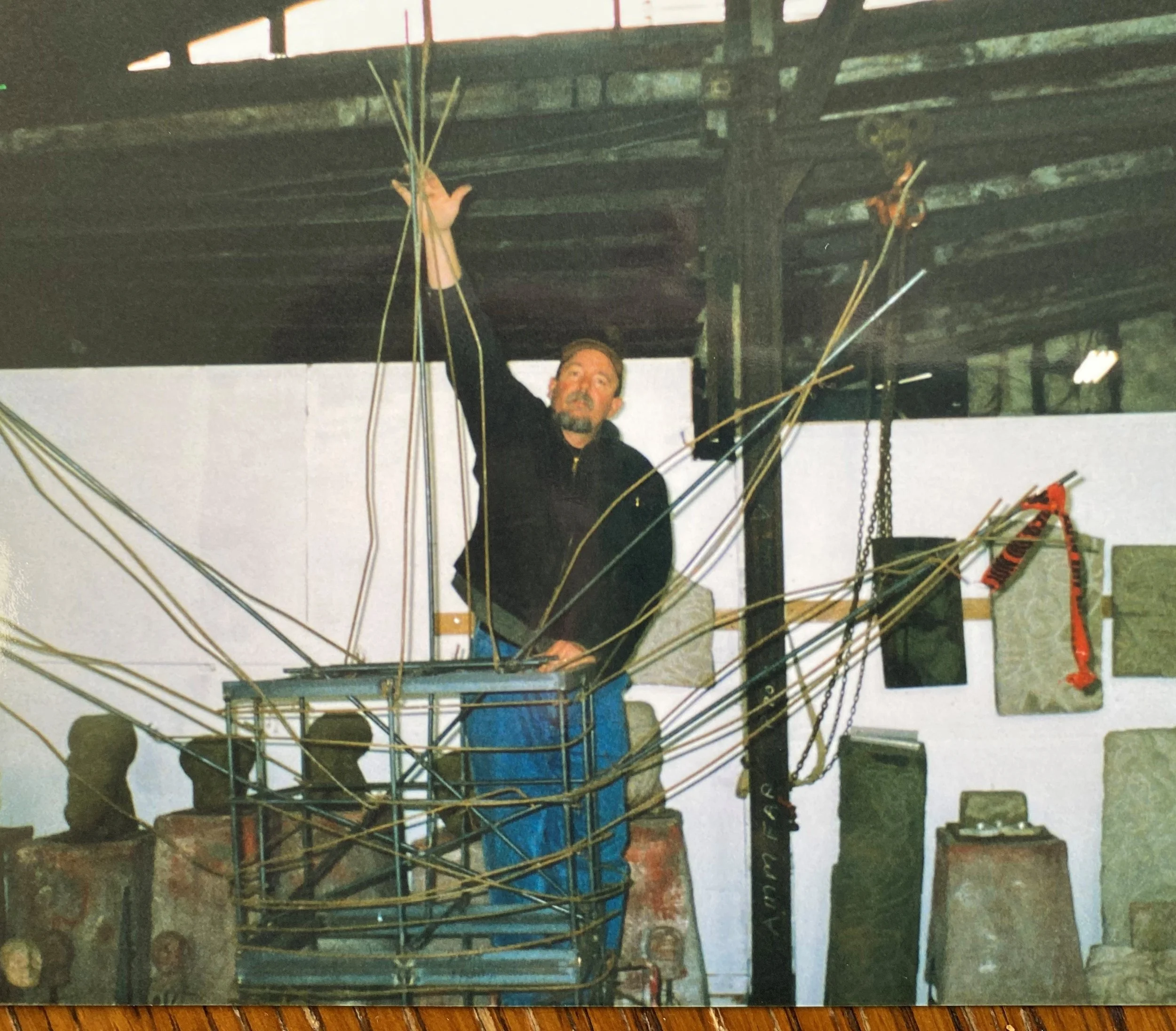 Sculptor Chuck Iffland at work on his “tree” sculpture for Gene’s opera Matter.